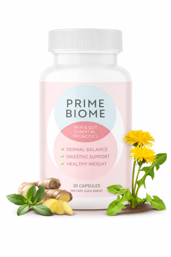 PrimeBiome is a daily probiotic supplement designed to support gut health using a blend of natural ingredients.